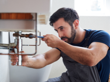 Reparos em encanamentos, registros, torneiras e manutenção hidráulica.